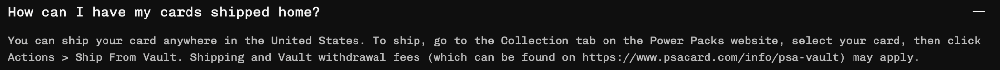 GameStop has announced a one day online beta release of their latest series of mystery graded card boxes. Previously only available in store, this series in collaboration with PSA will be available as an online purchase of a "digital box opening," which reveals your graded card immediately, with that card being held in the "PSA Vault." Unlike the in store PowerPacks you do not receive mystery booster packs. GameStop gives you the option to "Decide whether to sell, ship, or store in your PSA Vault," but is not the most upfront about the "withdrawal fees" required to have your slab shipped to you.